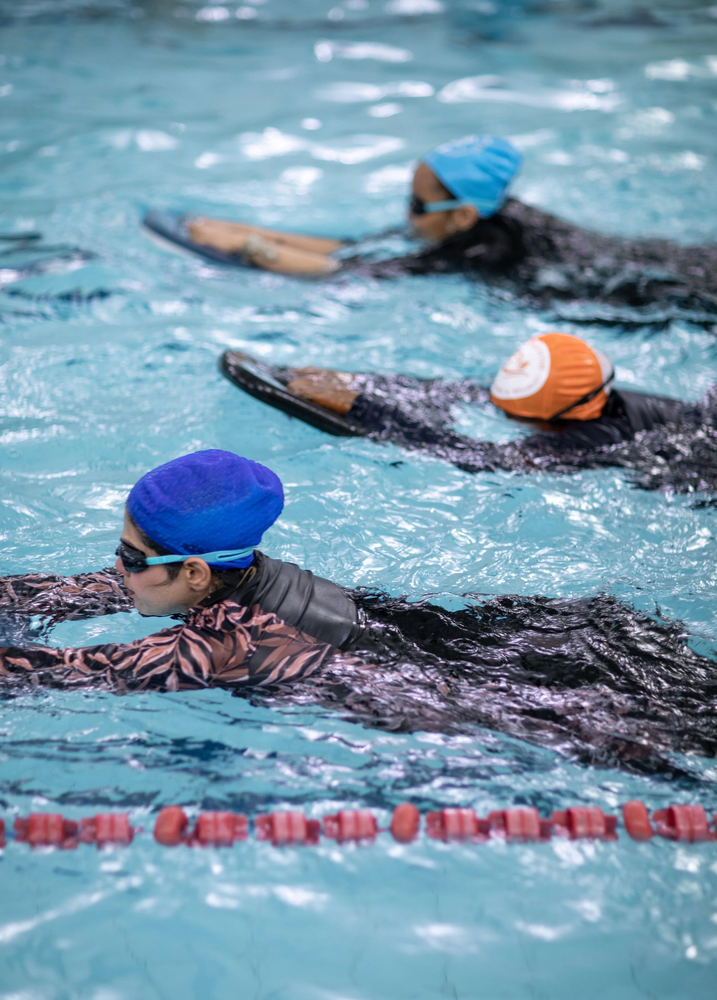 Our adult women only learn to swim programme is designed specifically for global majority women. We swim all year round during term-time. Our classes welcome women who are total beginners through to those looking to improve their strokes. Our diverse team of swim teachers ensure the sessions are welcoming, build confidence sociable and above all fun.